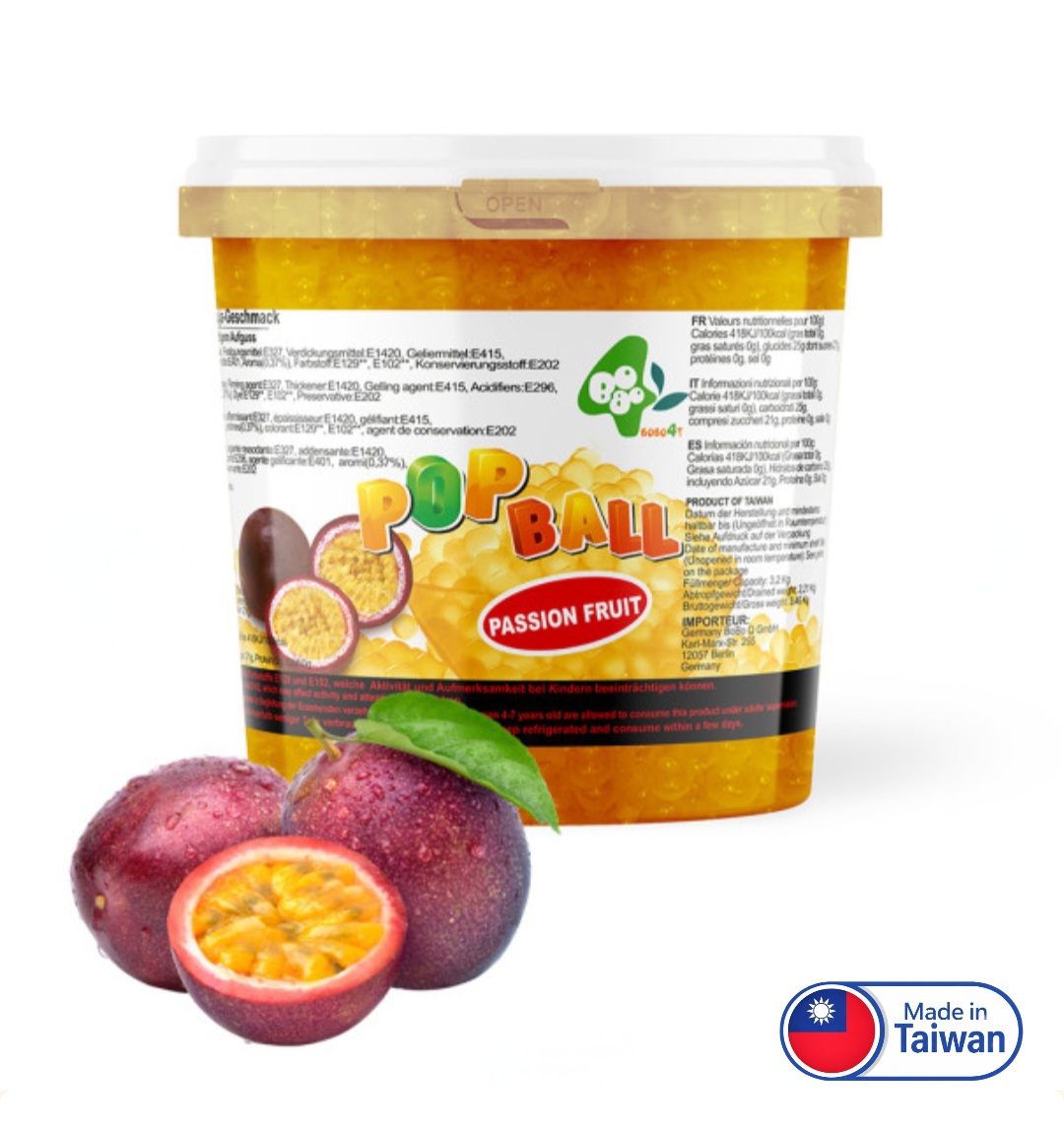 Les boba passion ont une belle couleur orangée, qui donneront de la couleur à vos Bubble Tea. Le goût exotique du fruit de la passion, séduira tous vos clients. La saveur passion, véritable best seller, est la référence à avoir à sa carte.