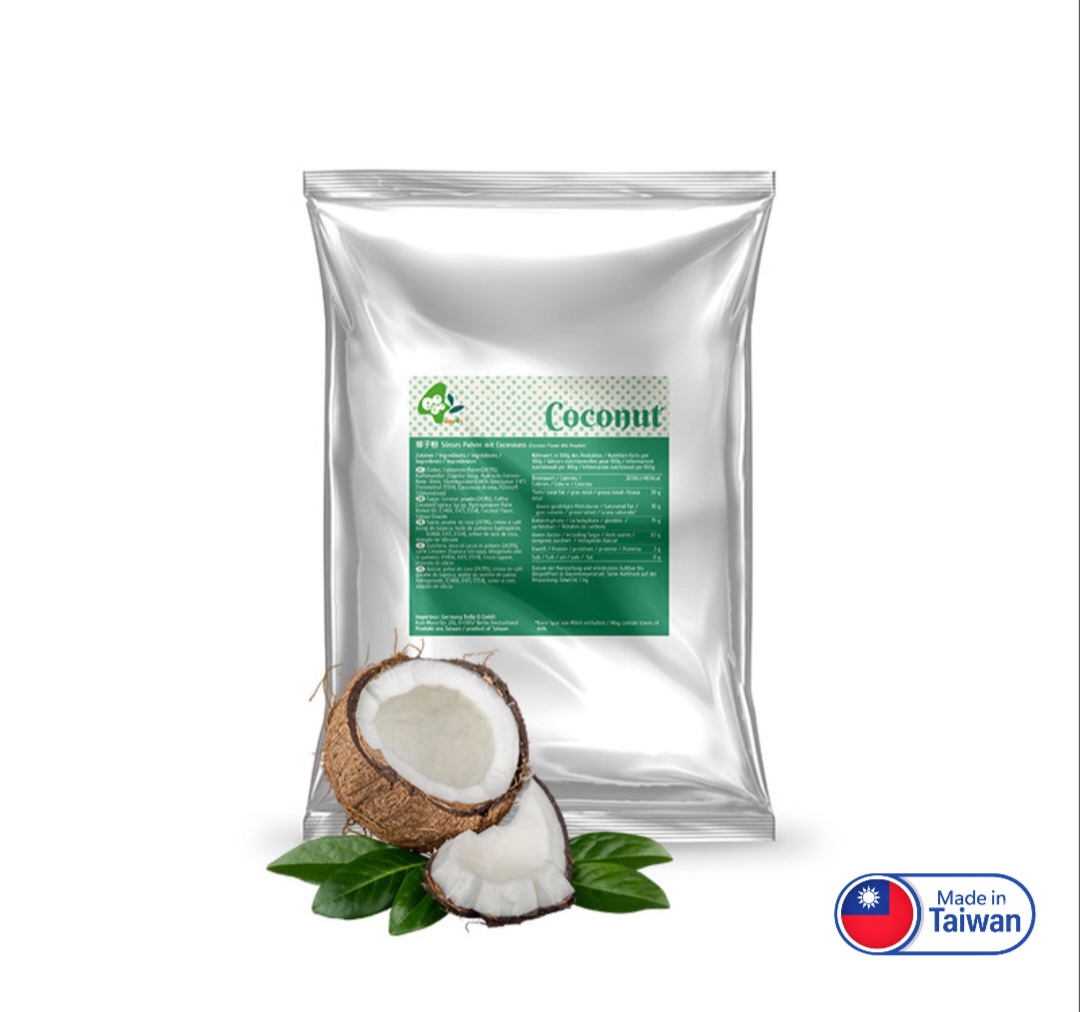 Poche de 1kg de poudre Vegan saveur coconut pour Bubble Tea. La poche permet de réaliser environ 22 boissons de 500mL.
